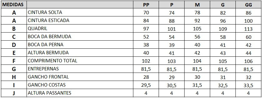 | Tamanhos | PP, P, M, G, GG |