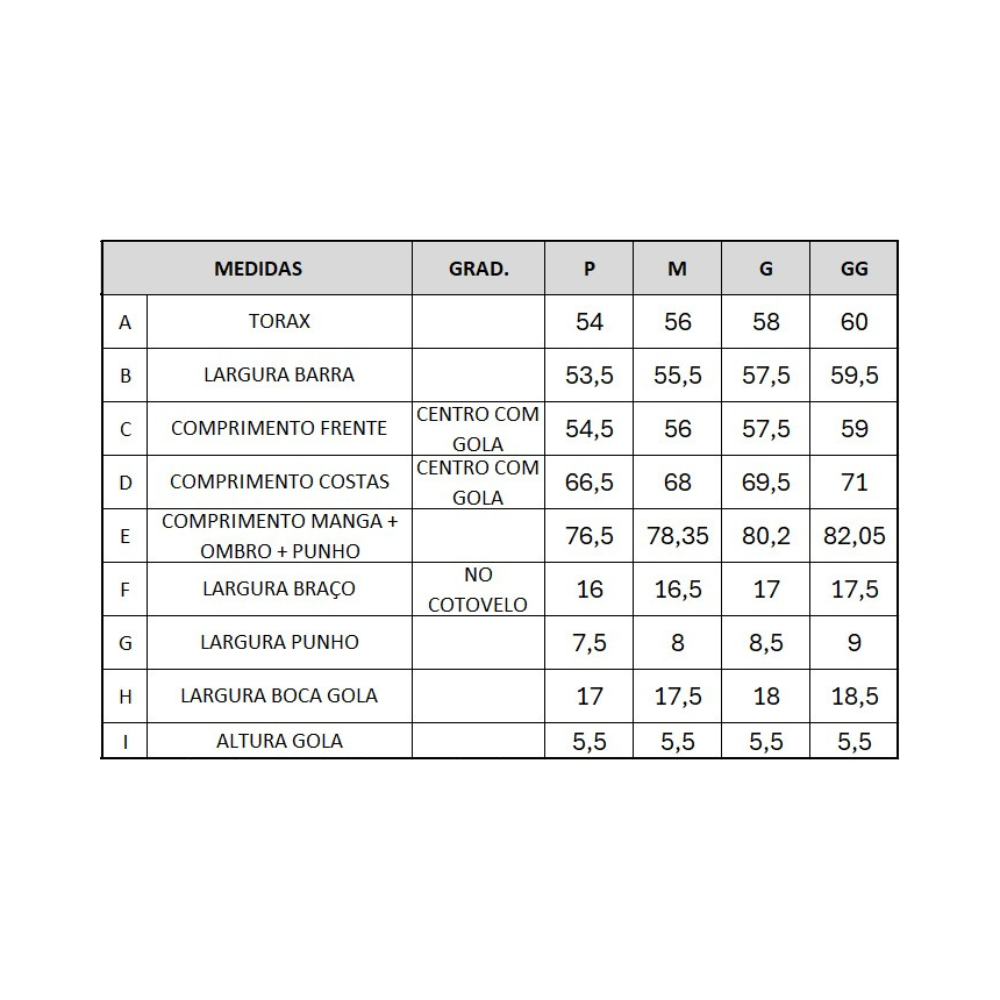 | Tamanhos | P, M, G, GG |